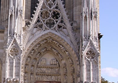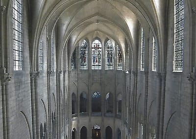 L’architecture du premier niveau s’inscrit dans la suite des cathédrales de Senlis et de Sens.